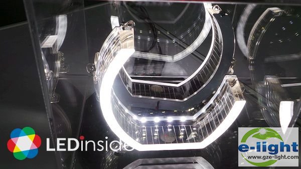 LEDinside此次于展会观察到,目前LED在尾灯市场应用已相当成熟,未来LED导入应用在车头灯将成为主流趋势,虽然目前LED车头灯尚未普及,但由于高功率LED技术提升,伴随LED价格下降,LED车灯逐渐由高阶车款慢慢移至中阶车款,未来可望向低阶车款普及。