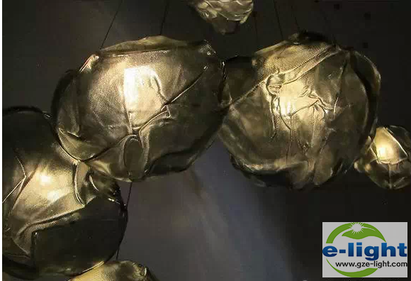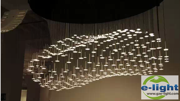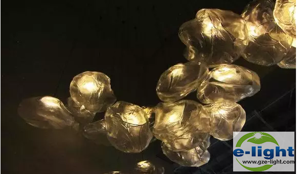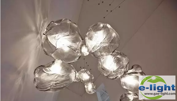 LED光源被放置在73节能灯内,然后收拢起吊灯,长长的吊灯错落有致,营造出云朵的效果。它比树形吊灯更为灵便,整件灯具更似一件高级定制的艺术品。
