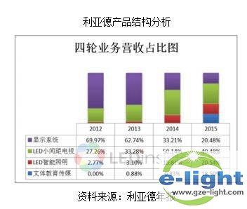 利亚德是LED小间距屏概念的开山鼻祖,正是在其推动下,小间距显示屏市场起于微末走向滥觞,2012年总营收仅5.69亿,小间距屏幕收入仅占营收的27%,然而到2015年,总营收达到20.2亿,总收入3年内翻两番,接近4倍,而小间距显示屏比例也达到40%,超过8亿RMB,成为小间距显示屏市场上名副其实的霸主。