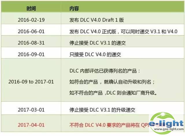 美国东部时间2016年06月01日,DLC正式发布了针对LED灯具、翻新套件、灯管等产品的Technical Requirements Table V4.0版。