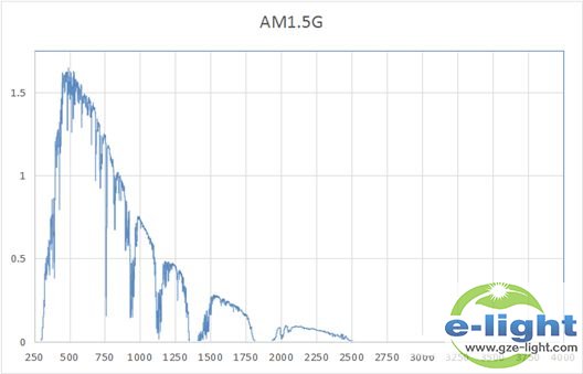 为了提供人造光源的光谱设计参考,我们给出波长350-850nm范围的AM1.5G图供参考。