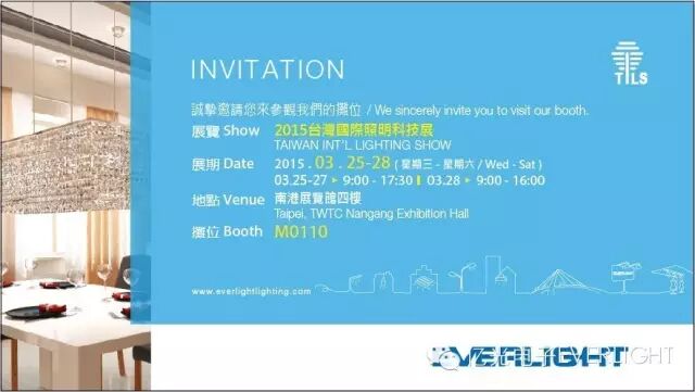 亿光诚挚邀请您,前来参观: 台湾国际照明科技展 摊位: M0110 地点:南港展览馆4楼 期间: 3月25日– 28日, 2015