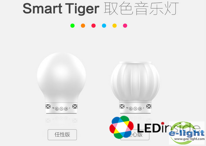 Smart Tiger取色音乐灯采用硅胶灯罩,更贴近肌肤触感。人性化触拍自动调整灯光暗度,满足不同时段的光线需求。它独具取色功能,随时随地变色,用户可轻按开关,通过底座感应周围物品的颜色,变幻成和该物品相同的颜色。