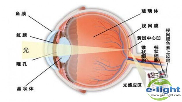 大意是蓝光可以引起视网膜的光化学损伤,主要集中在视网膜色素内表皮细胞,并在视网膜上形成弧光和盲点。
