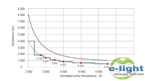 图10 IEC推荐的低风险蓝光危害色温与照度组合
