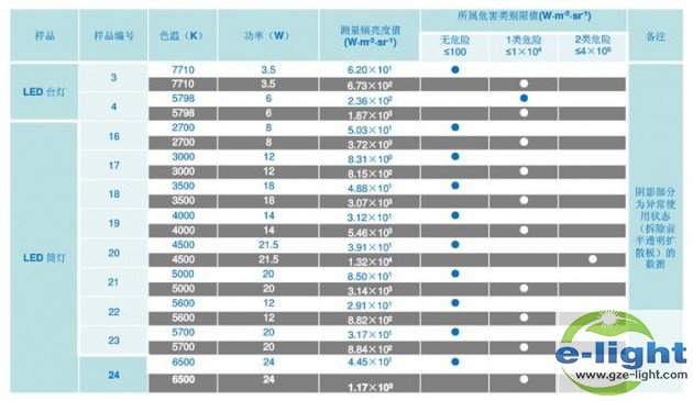 可以看出,标准对其结果是分成三个等级的,即豁免级、低风险和中风险。其中GB 7000.1-2015规定了灯具产品的蓝光危害不可超过低风险,而且儿童可移式灯具及电源插座夜灯这两个类别产品的蓝光危害更是不能超过豁免级。