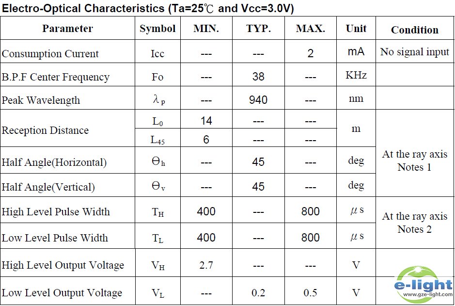 环氧封装设计为一个红外.滤波器。解调输出信号可直接由微处理器解码