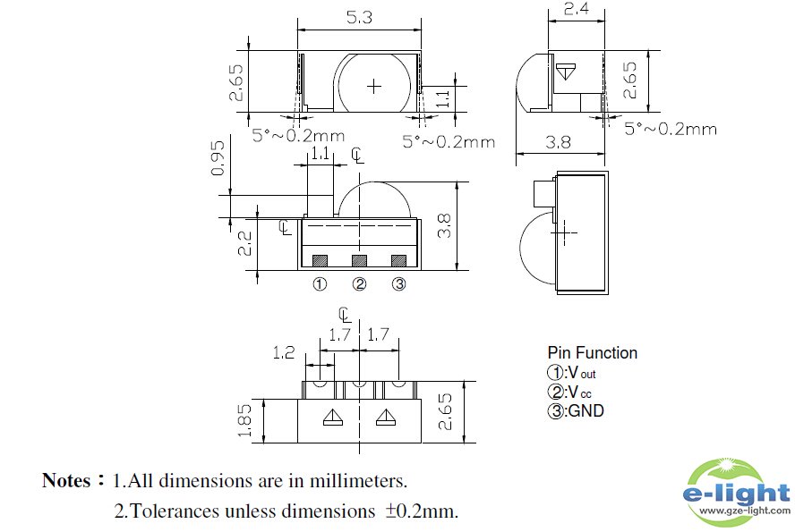 •IRM-V538T/TR14该装置是一种微型SMD型红外遥控的接收器,