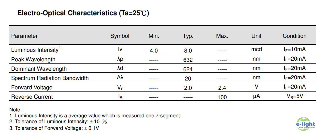 • ELF-511SURWA/S530-A3是9.14mm(0.36 “)的七段显示器。