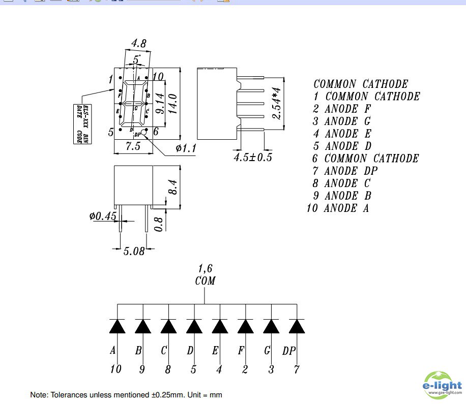 尺寸:0.36英寸DIP插件型单八数码管