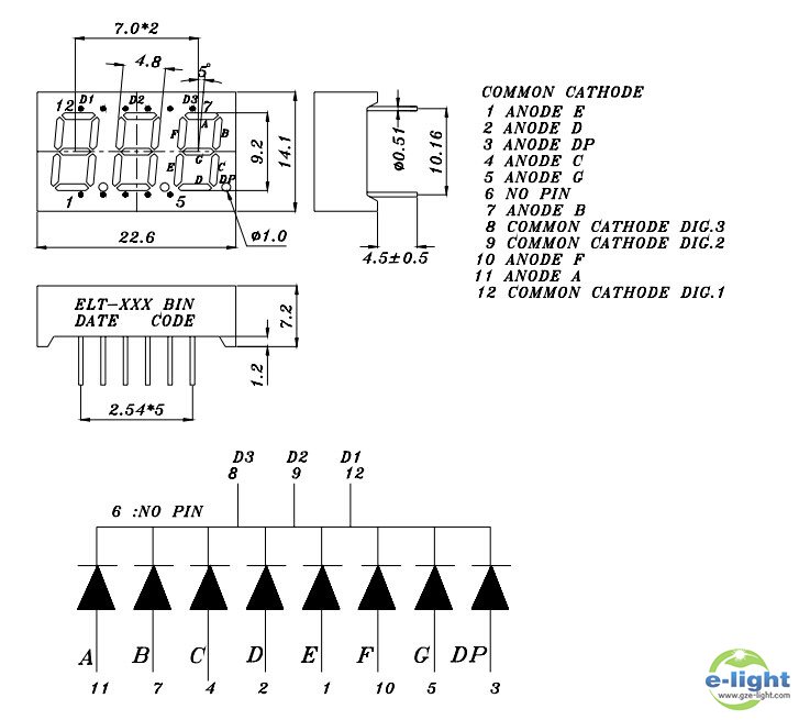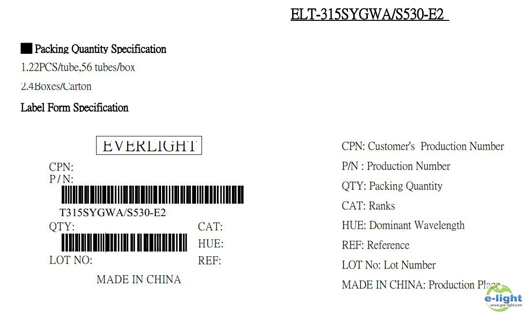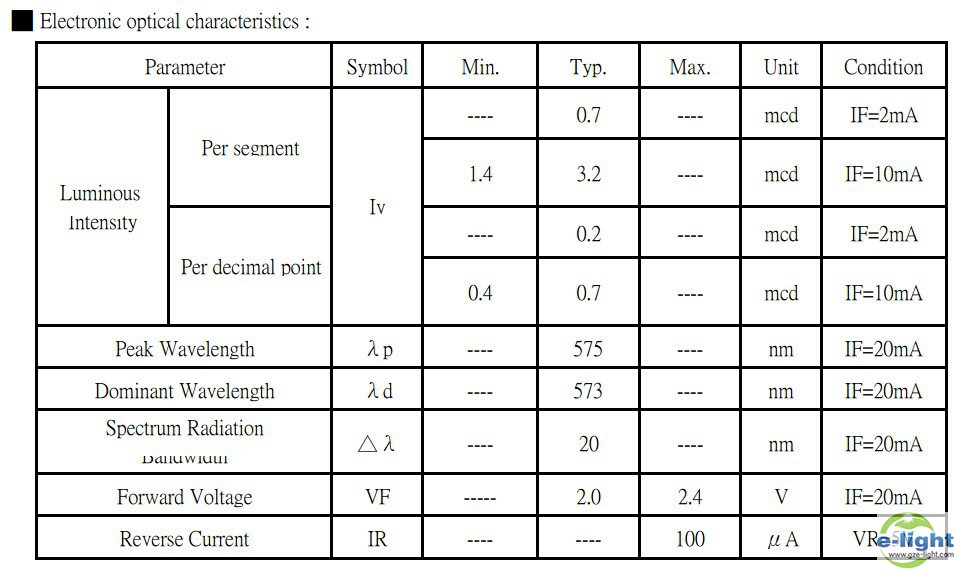 • ELT-315SYGWA/S530-E2是9.2mm(0.36 “)的七段显示器。